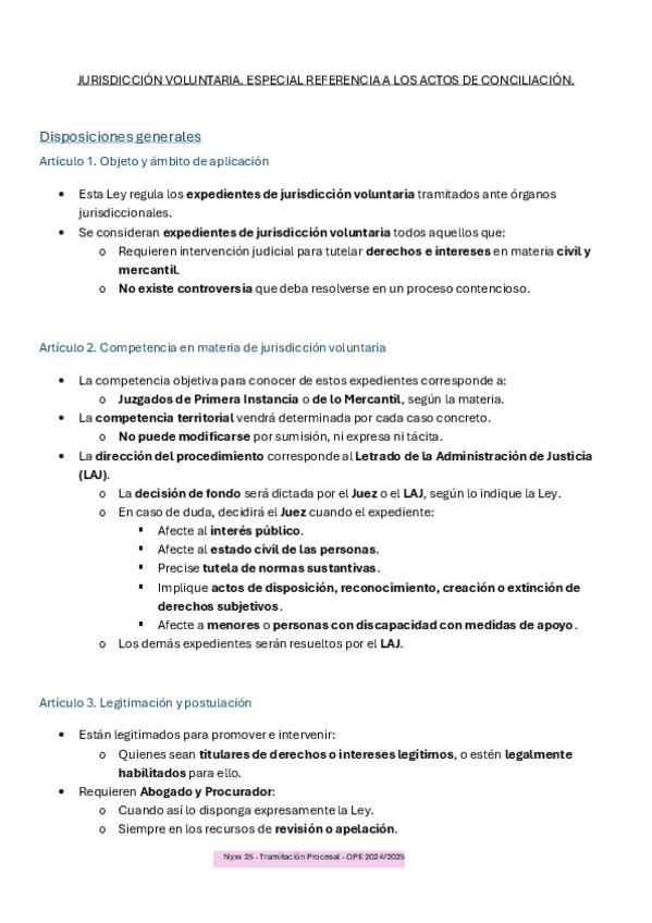 Resumen claro y detallado, especial mención a los actos de conciliación