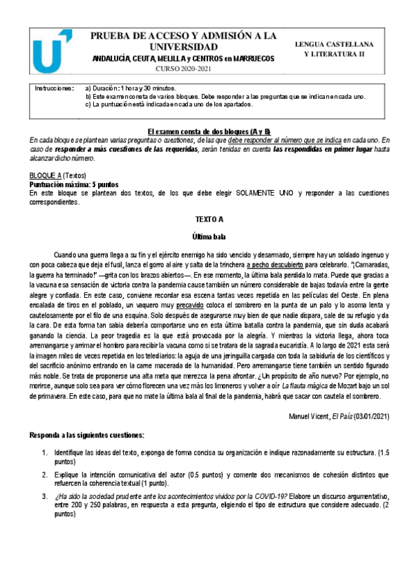Lengua Andalucía exámenes y correcciones