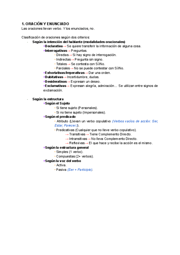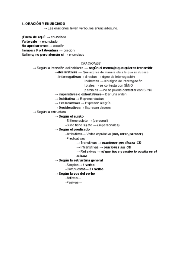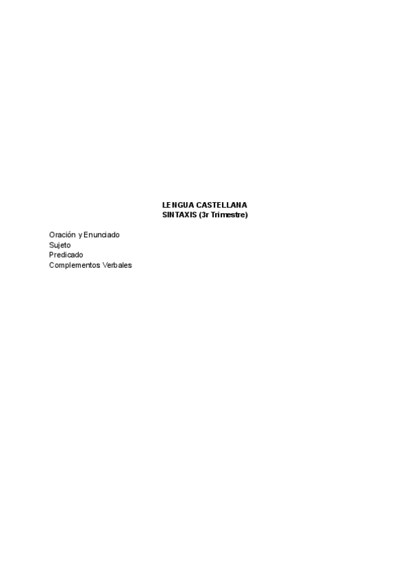 Apuntes sobre: Oración y Enunciado, Sujeto, Predicado y Complementos Verbales