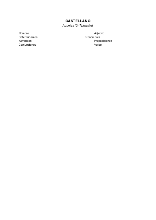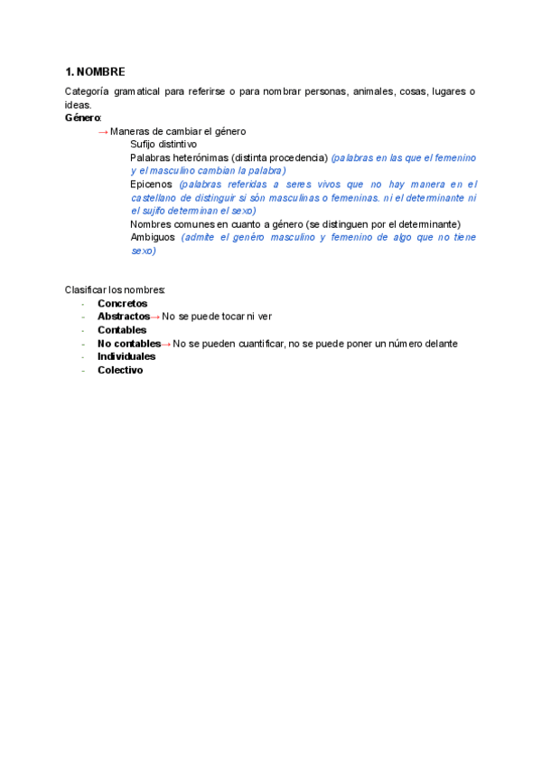 Apuntes sobre: Nombre, Determinantes, Pronombres, Adjetivos, Adverbios, Preposiciones, Conjunciones y Perífrasis Verbales