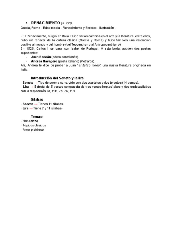 Apuntes sobre: El Renacimiento, Garcilaso de la Vega, Lazarillo de Tormes y Don Quijote.