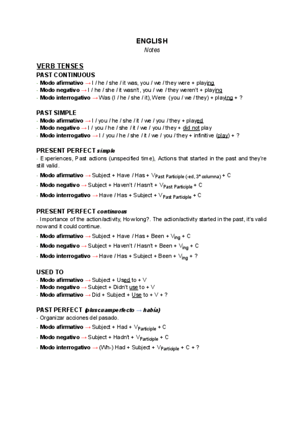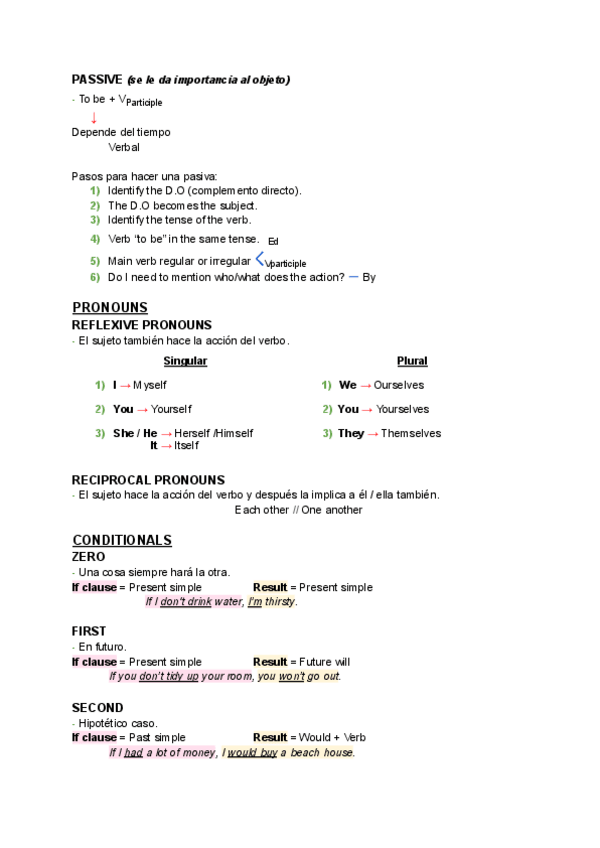 Apuntes sobre: Todos los tiempos verbales, Pasiva, Pronouns, Conditionals y Question Forms.
