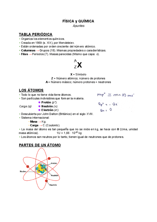 Apuntes sobre: Tabla Periódica, Átomos, Isótopos e Iones. Apuntes de 3 ESO, no hay asignatura de esto en ese curso.