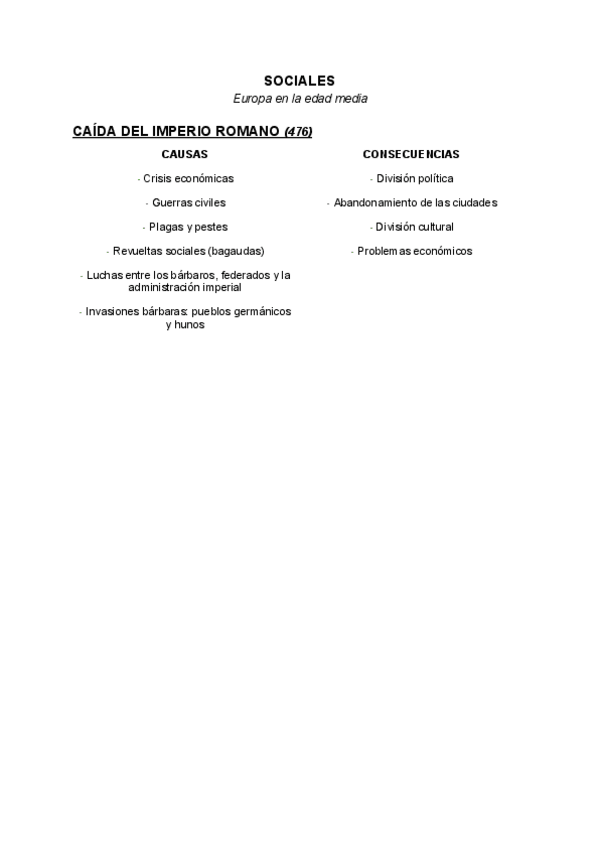 Apuntes sobre: La caída del Imperio Romano, Los pueblos Germánicos y los Hunos, El Reino Franco y El Imperio Bizantino.