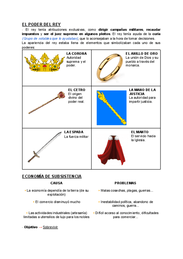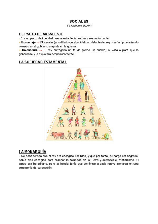 Apuntes sobre: El Pacto de Vasallaje, La Sociedas Estamental, La Monarquía, El Poder del Rey, Economía de Subsistencia, El Castillo, La Nobleza, El Clero, Los Campesinos, Las Rentas de la Iglesia y su Organización, Malos Usos.
