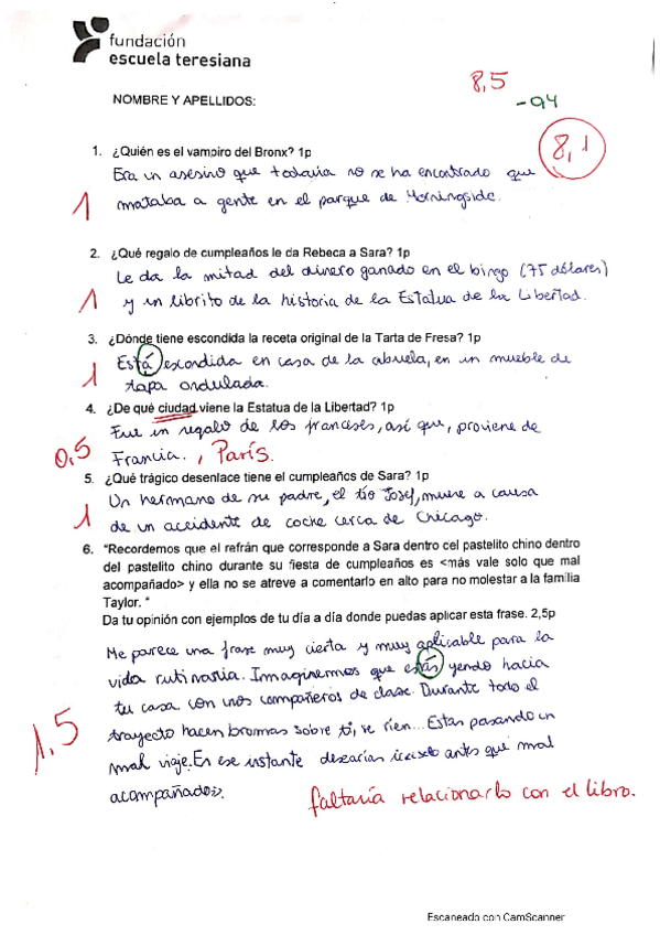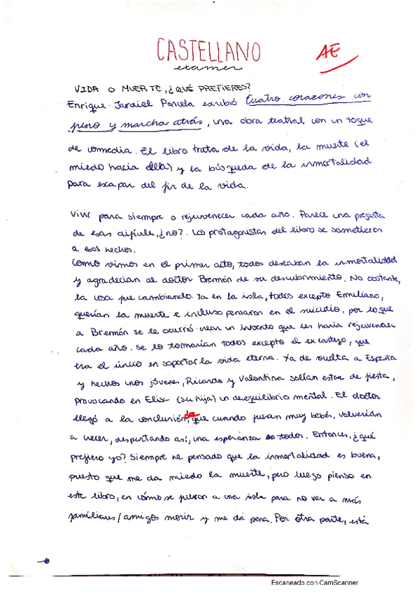 Examen tipo redacción del libro "Cuatro Corazones con Freno y Marcha Atrás" de Enrique Jardiel Poncela.