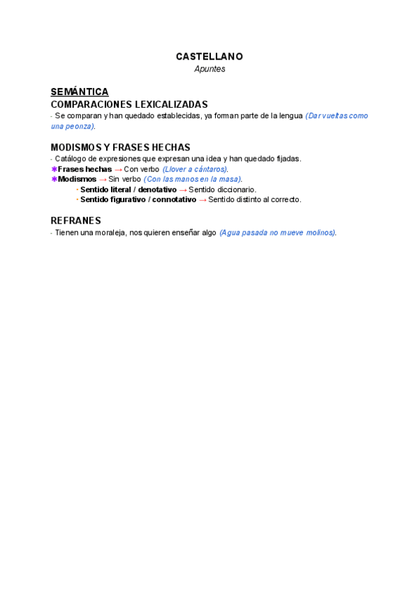 Apuntes sobre: Comparaciones Lexicalizadas, Modismos y Frases hechas, Refranes.