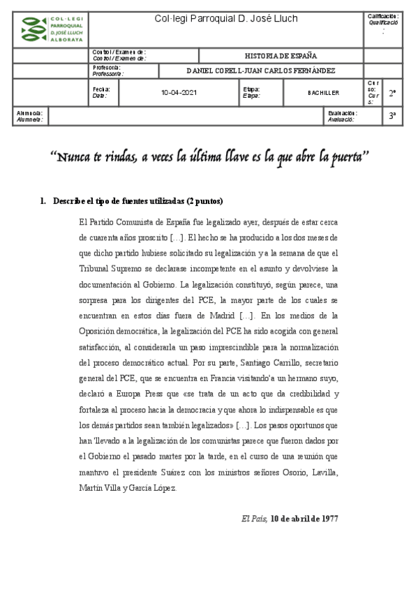 Últimas publicaciones de PARROQUIAL DON JOSÉ LLUCH - Bachillerato