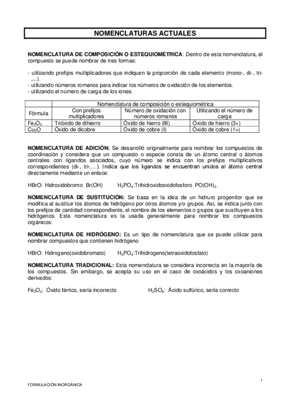 Formulación Inorgánica