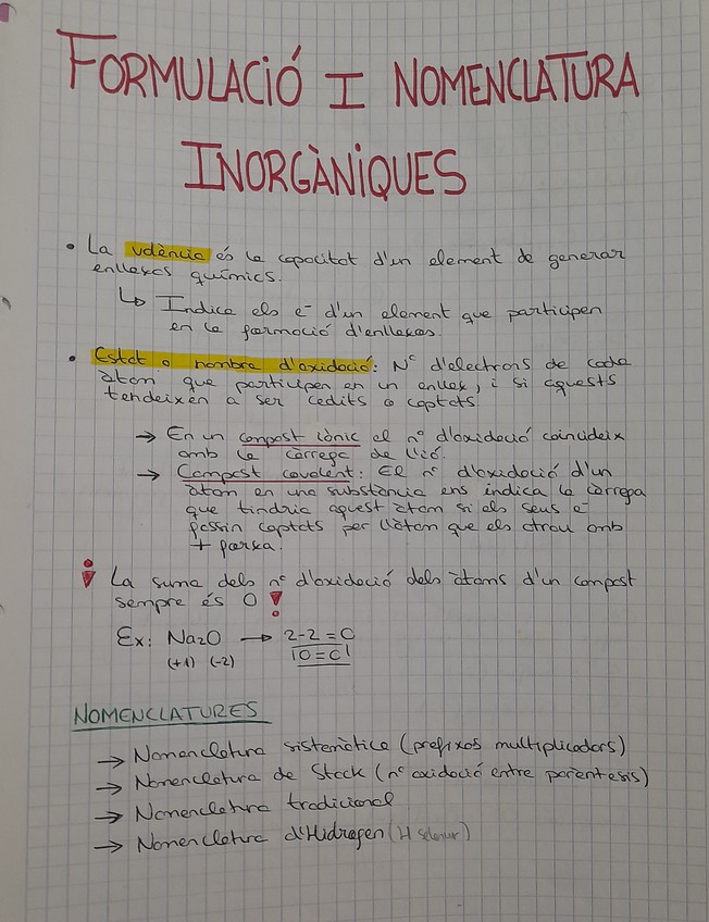 Formulación inorgánica 2n bat. Un resum que te hará entender cómo se formula de manera correcta y fácil.