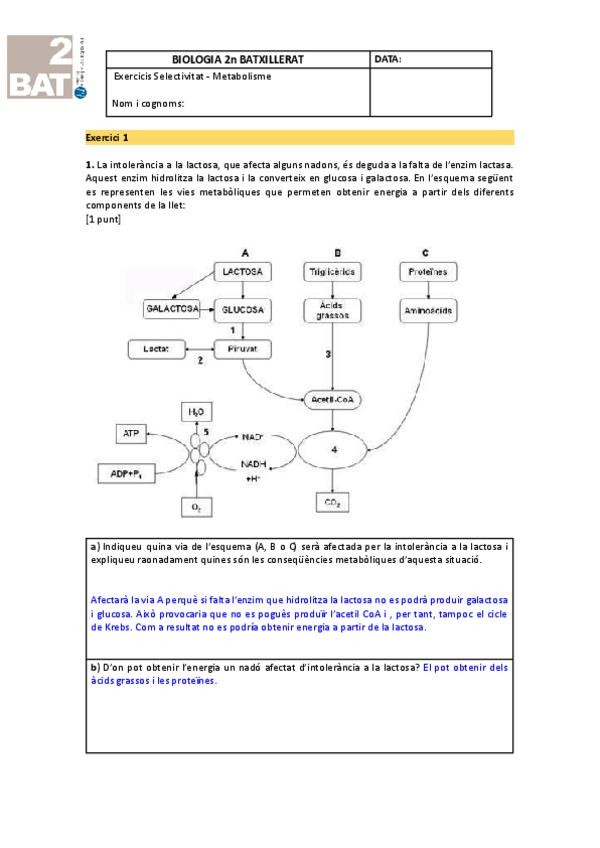 Ejercicios metabolismo 2n bat para repasar de cara a selectividad