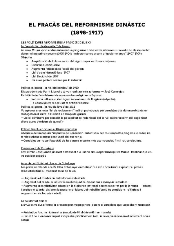 ? APUNTES HISTORIA DE ESPAÑA – PAU CATALUNYA Crisis de la Restauración (1898-1931) explicado claro y directo: • Reformismo dinástico: Maura y Canalejas • Republicanismo y movimiento obrero • Solidaritat Catalana y Semana Trágica • Mancomunitat y Marruec