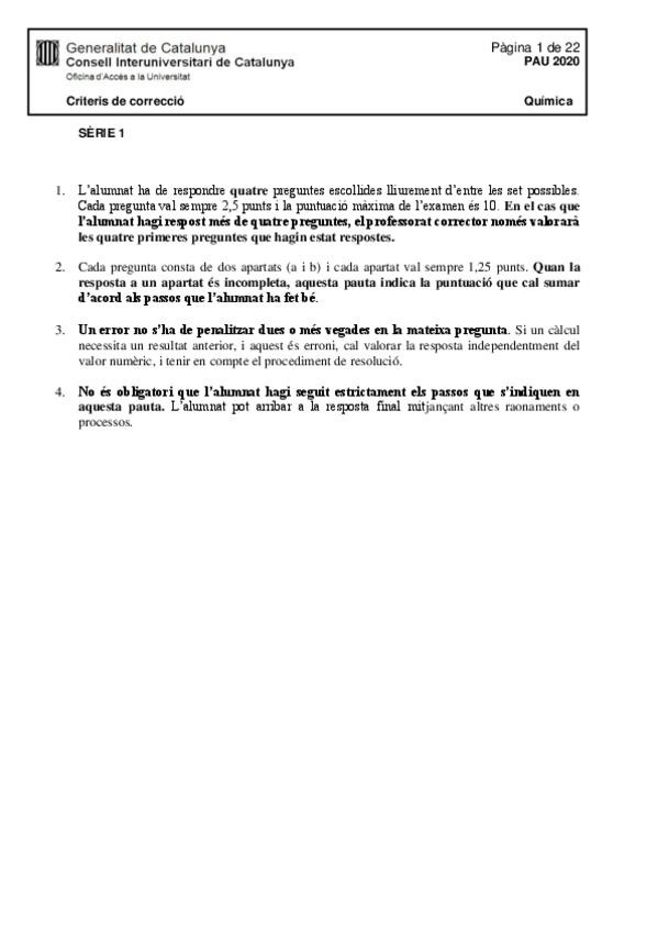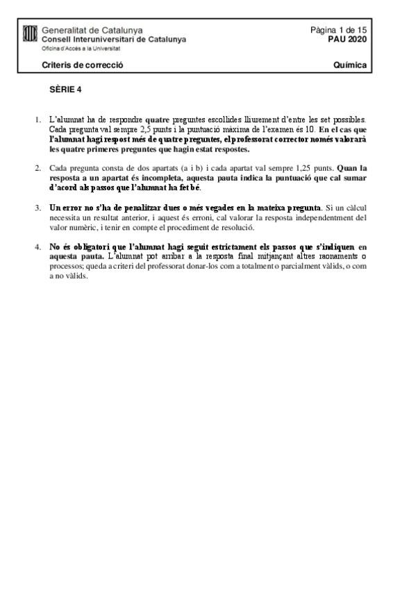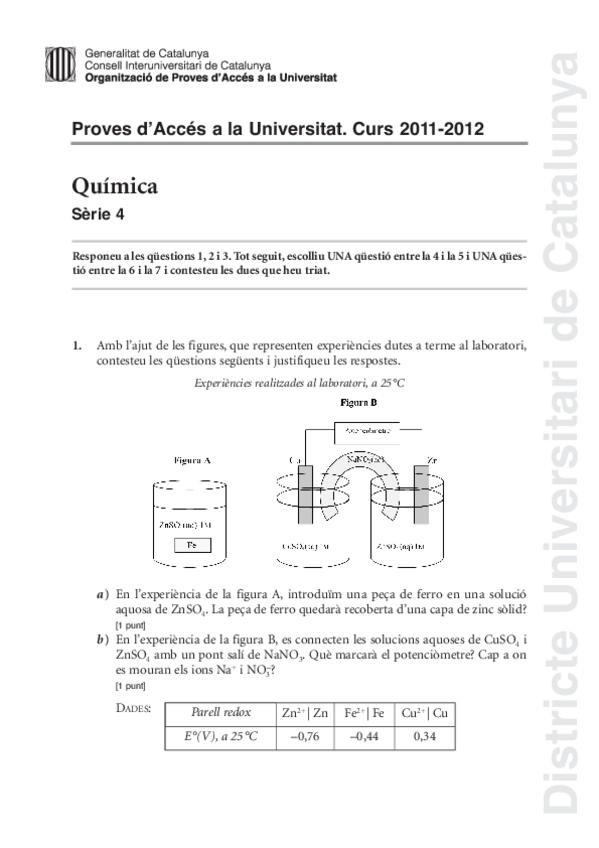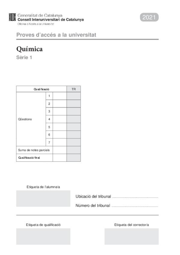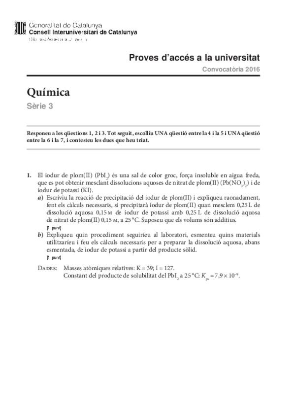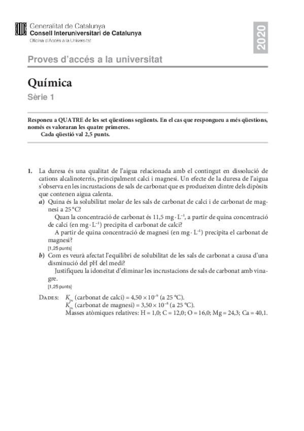 Exámenes química PAU Catalunya