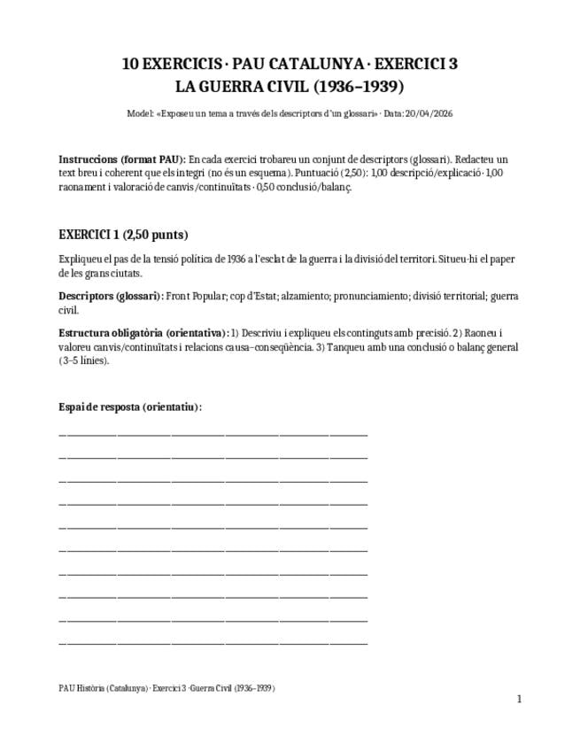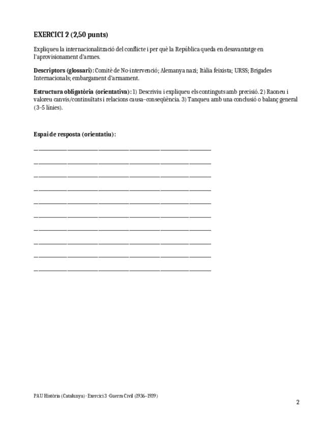 Exercicis sobre la Guerra Civil similars a l'exercici 3 de les PAU de Catalunya