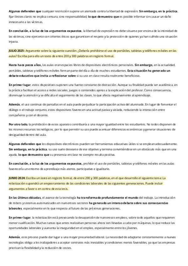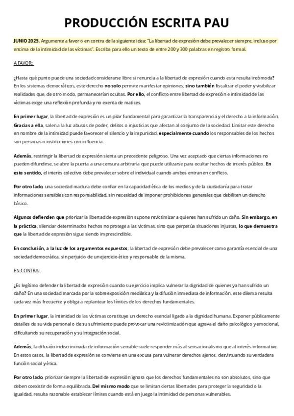 Producciones escritas resueltas de las PAU Evau ordinaria y extraordinaria 2023, 2024 y 2025 comunidad valenciana texto argumentativo