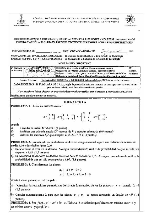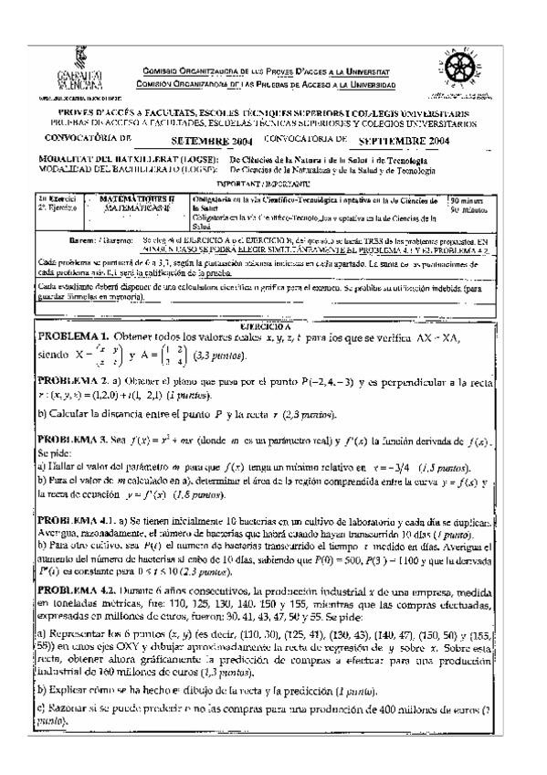 He publicado nuevos examenes de Matemáticas II: exámenes pau