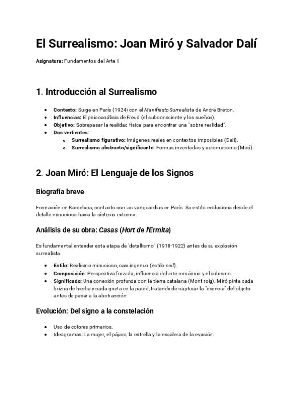 Apuntes sobre el Surrealismo; contexto histórico, características, autores (Joan Miró y Salvador Dalí) y comparación