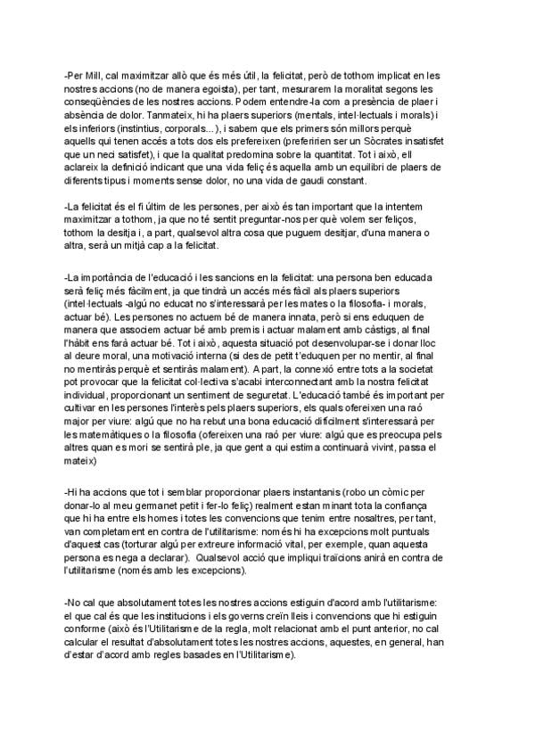 Aquí s'hi pot trobar un resum complet, breu i ben redactat de la doctrina filosòfica de Mill, amb tots els coneixements necessaris per selectivitat, elaborat a partir de l'assistència a classe, de vídeos i dels propis textos de Plató. Vaig treure un 10 a