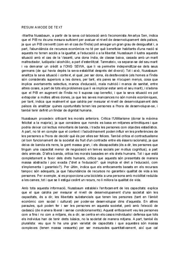 Aquí s'hi pot trobar un resum complet, breu i ben redactat de la doctrina filosòfica de Nussbaum, amb tots els coneixements necessaris per selectivitat, elaborat a partir de l'assistència a classe, de vídeos i dels propis textos de Plató. Vaig treure un 1
