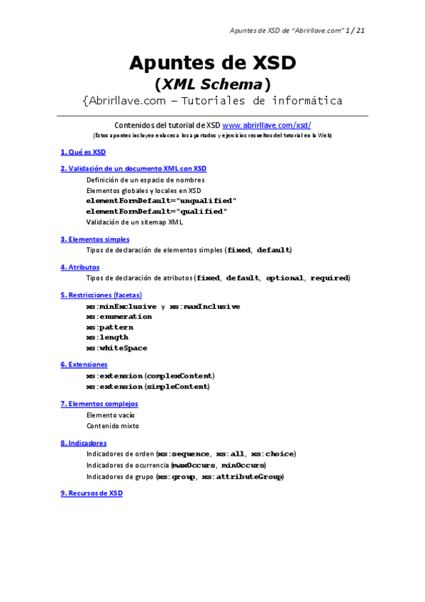 He publicado nuevos apuntes de Lenguajes de marcas y sistemas de gestión de información: RESUMEN-XML-SCHEMA-O-XSD.pdf