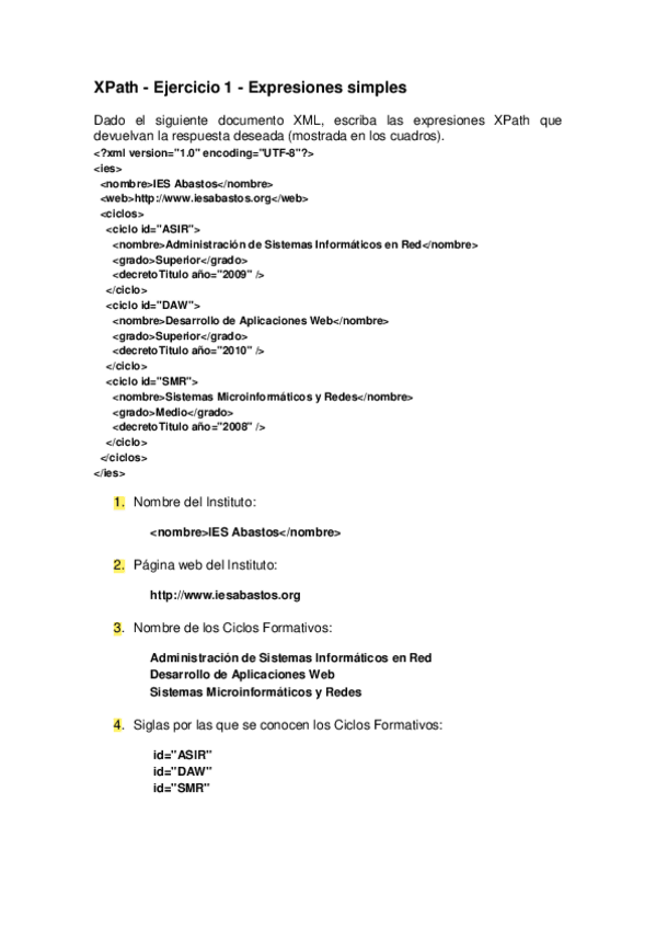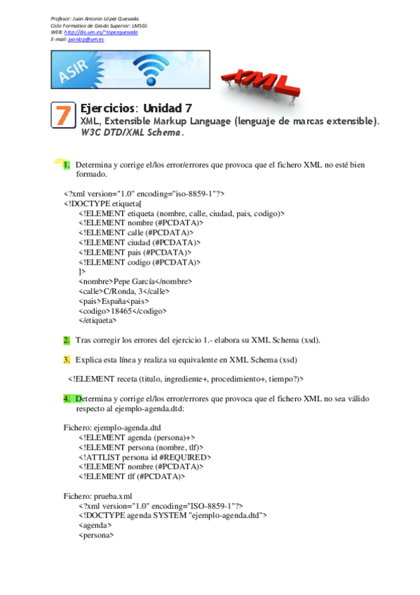 He publicado nuevos ejercicios de Lenguajes de marcas y sistemas de gestión de información: Ejercicios-repaso-XML.pdf
