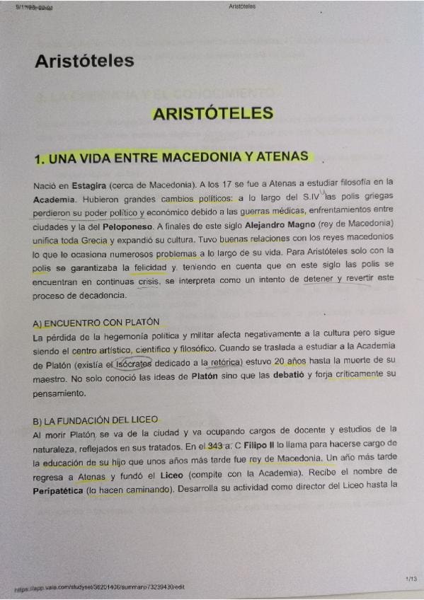 Apuntes Aristóteles - Selectividad