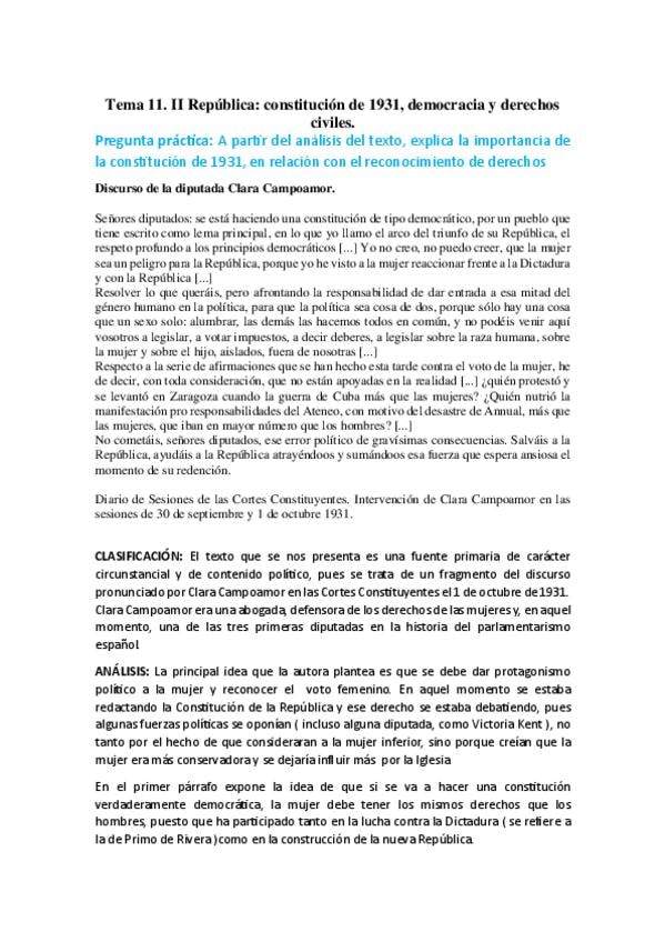 He publicado nuevos apuntes de 2º Historia de España: 11-DISCURSO-CAMPOAMOR-CONSTITUCION-1931.pdf