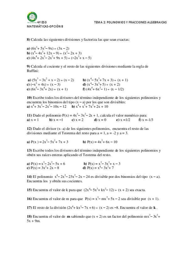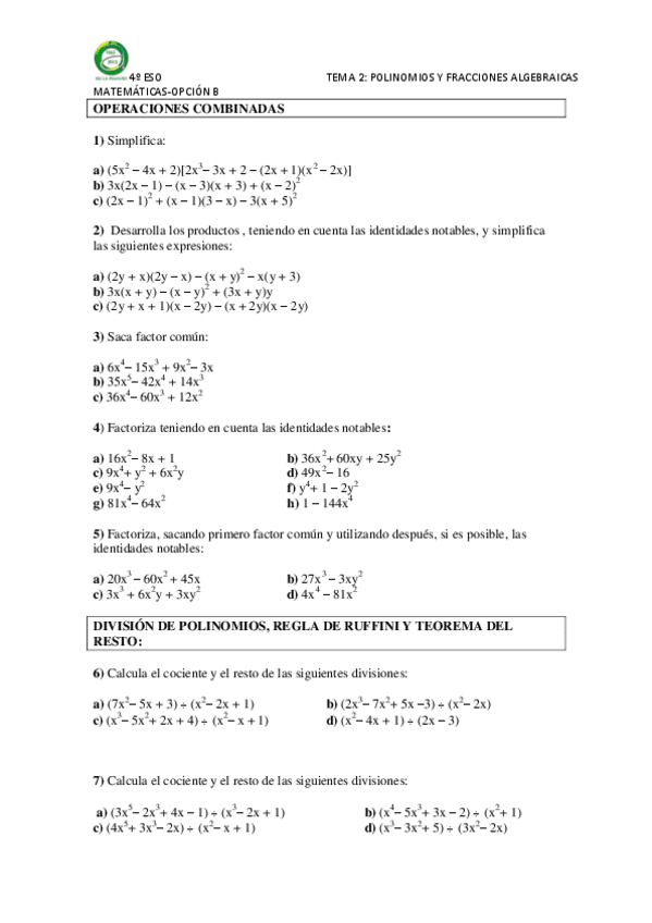 He publicado nuevos ejercicios de 4º Matemáticas: polinomis-i-fraccions-agebraiques-4rt.pdf