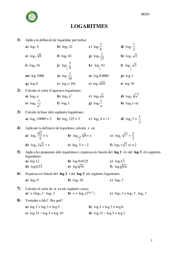 He publicado nuevos ejercicios de 4º Matemáticas: logaritmes-4r-eso-1699.pdf