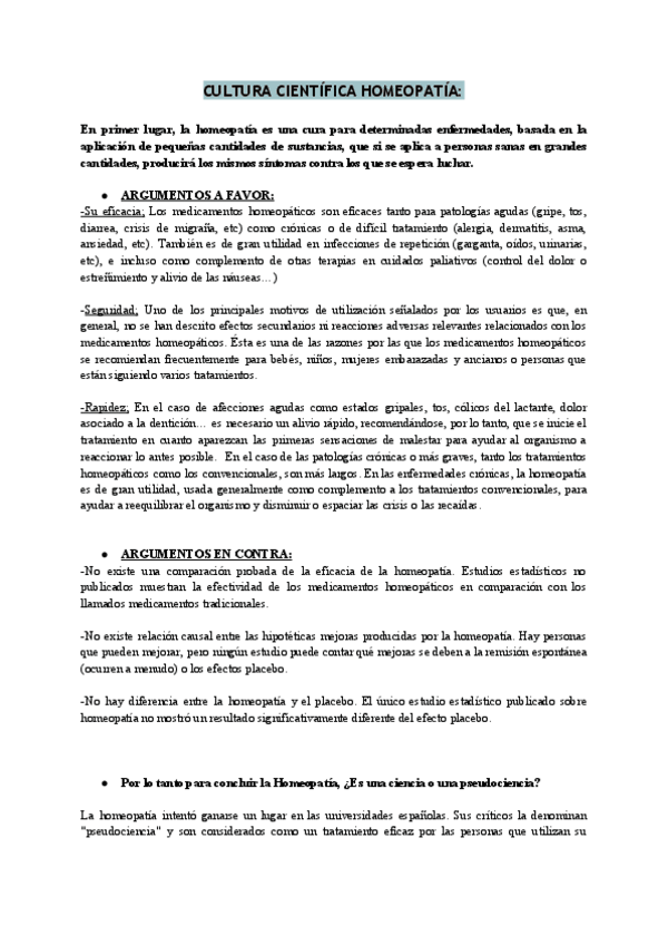 Actividad sobre la Homeopatía que puede caer en vuestros exámenes.