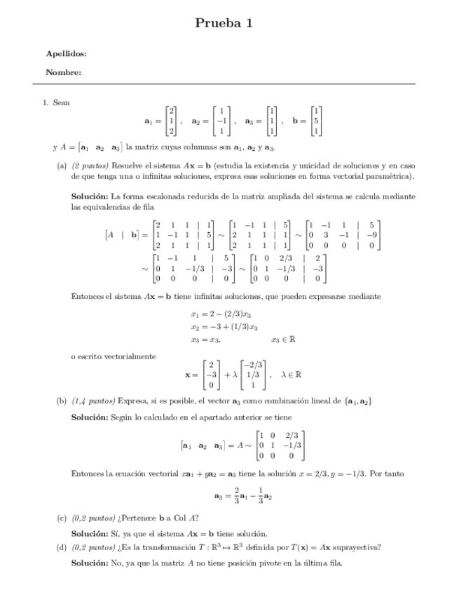 He publicado nuevos examenes de 1º Álgebra Lineal: Prueba1Soluciones.pdf