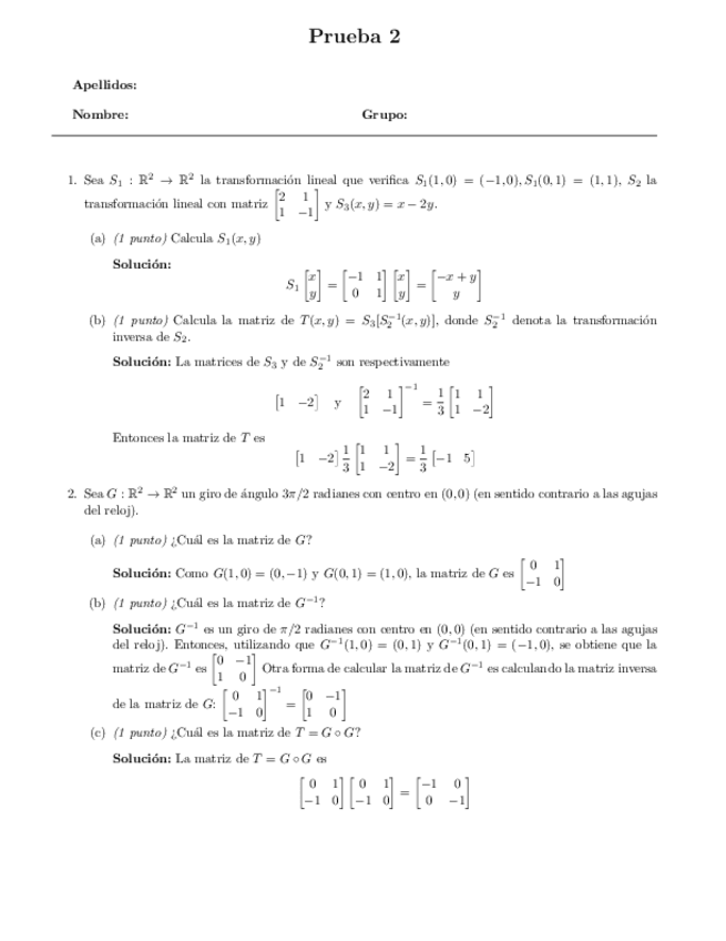 He publicado nuevos examenes de 1º Álgebra Lineal: Prueba2Soluciones.pdf