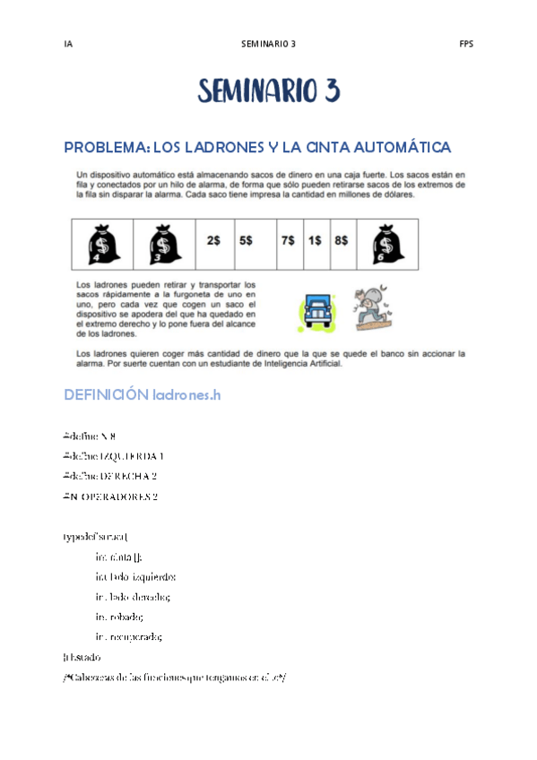 He publicado nuevos ejercicios de 3º Inteligencia Artificial: Seminario 3 - Ladrones.pdf