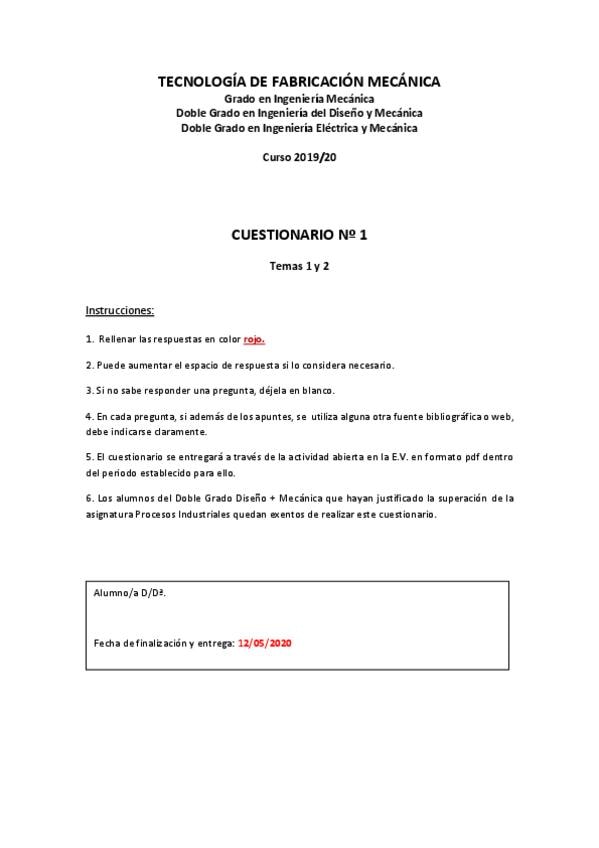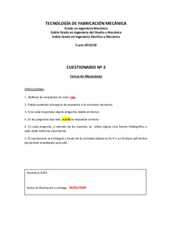 He publicado nuevos apuntes de 3º Tecnología de Fabricación Mecánica: Cuestionarios corregidos