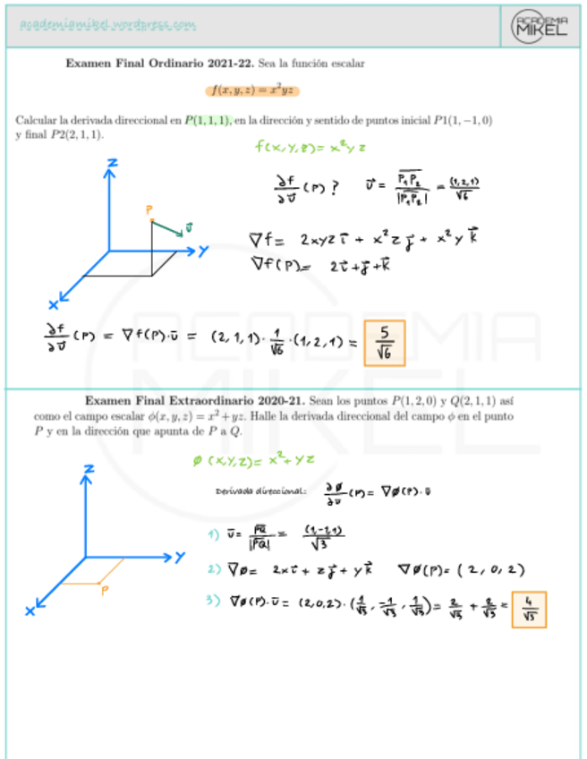 Ejercicios RESUELTOS de examen (Mates II)