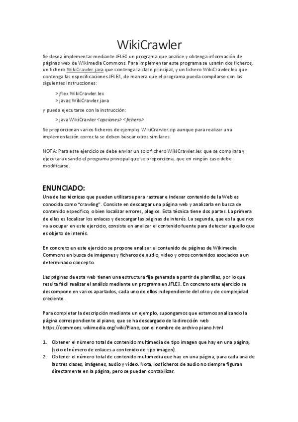 He publicado nuevos ejercicios de 3º Procesadores de Lenguajes: WikiCrawler.pdf
