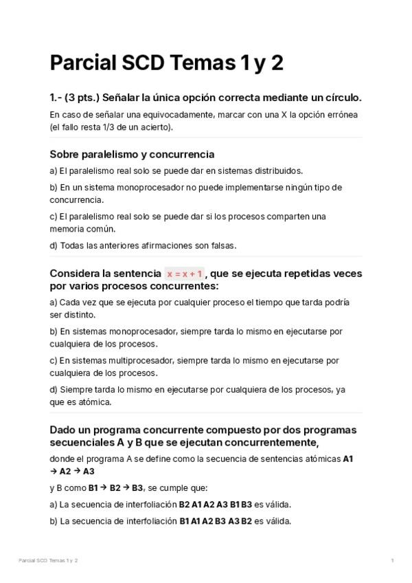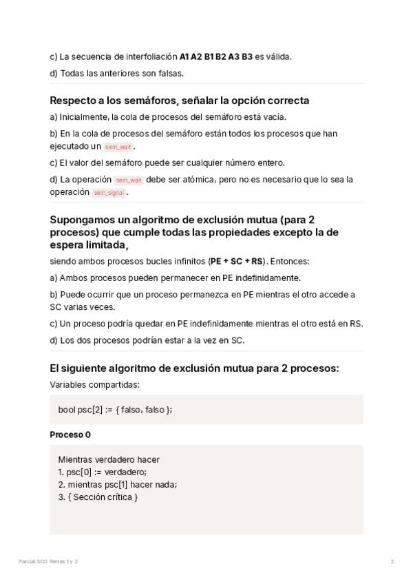 He publicado nuevos examenes de 2º Sistemas Concurrentes y Distribuidos: ParcialSCDTemas1y2.pdf
