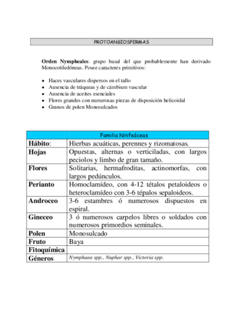 TEMA 12 - NINFEIDAS (Protoangiospermas)