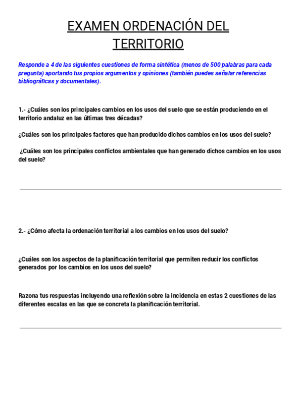 He publicado nuevos examenes de 3º Ordenación del Territorio: EXÁMENES