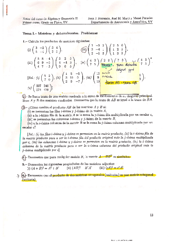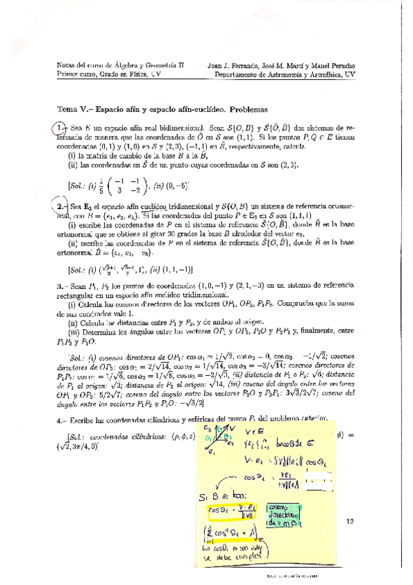He publicado nuevos ejercicios de 1º Álgebra y Geometría II: Tuteladas y cuestiones resueltas