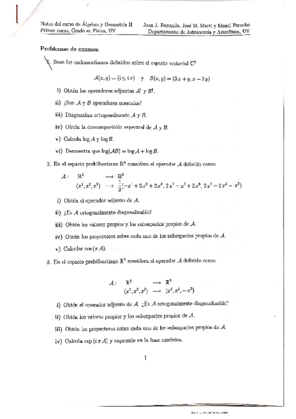 He publicado nuevos examenes de 1º Álgebra y Geometría II: Problemas y test de examen resueltos