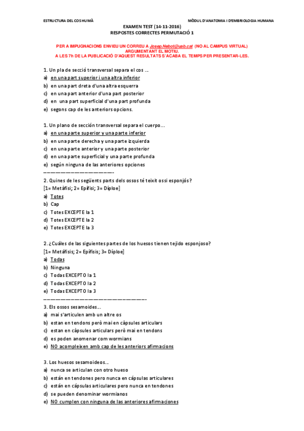 He publicado nuevos examenes de 1º Estructura del Cuerpo Humano: ECH 1P-JNC2016 PERMUTACIÓ 1 RESPOSTES CORRECTES.pdf