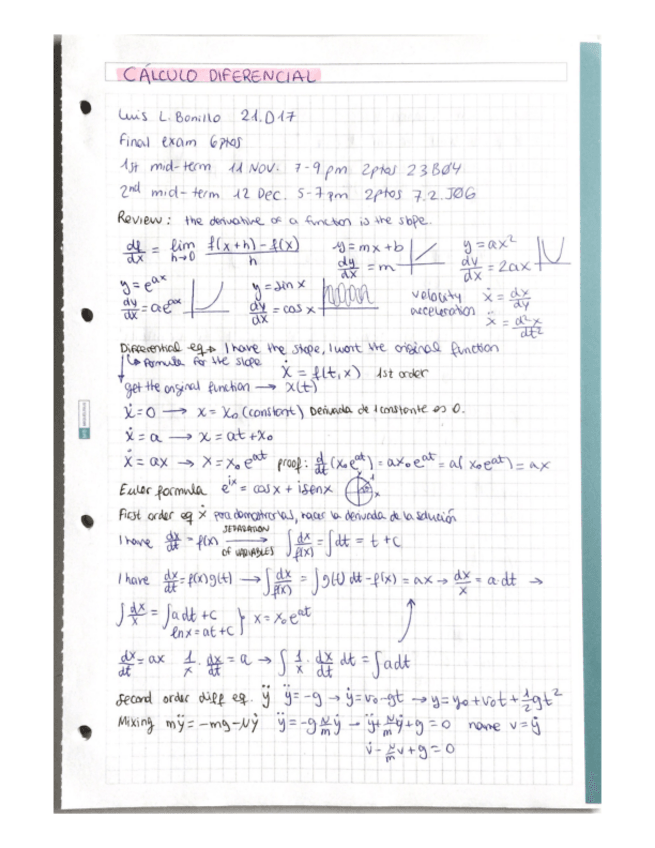 He publicado nuevos apuntes de 2º Cálculo diferencial aplicado: Resumenes