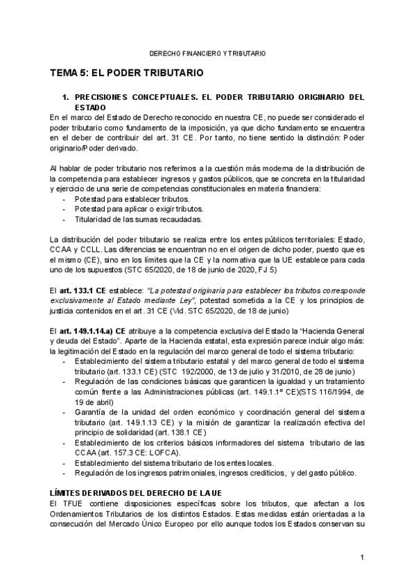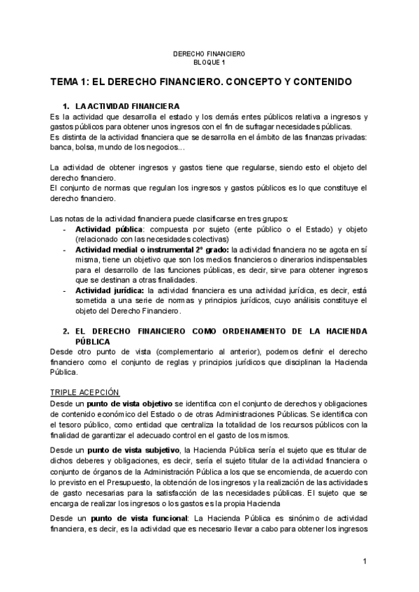 Temario Derecho Financiero