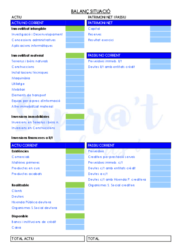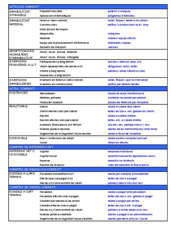 Plantilles i llistat de comptes, fórmules...