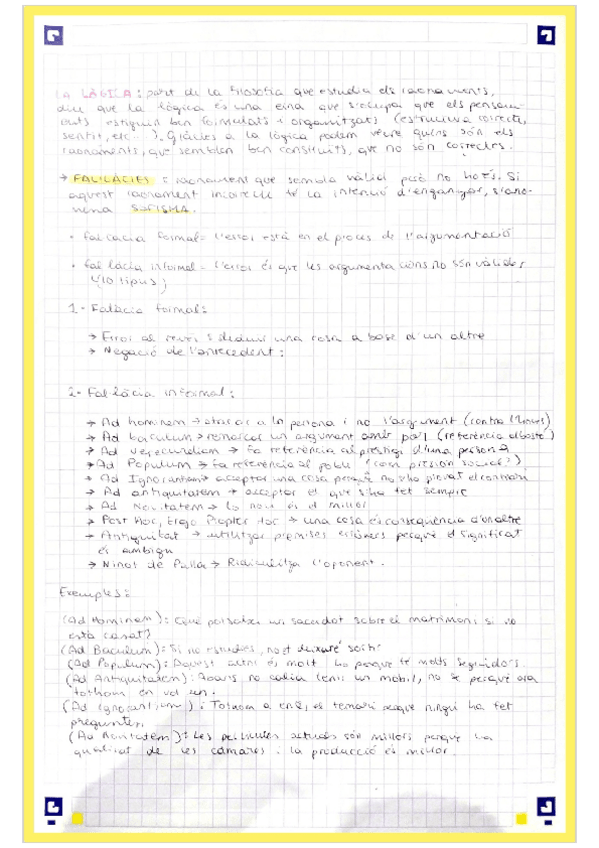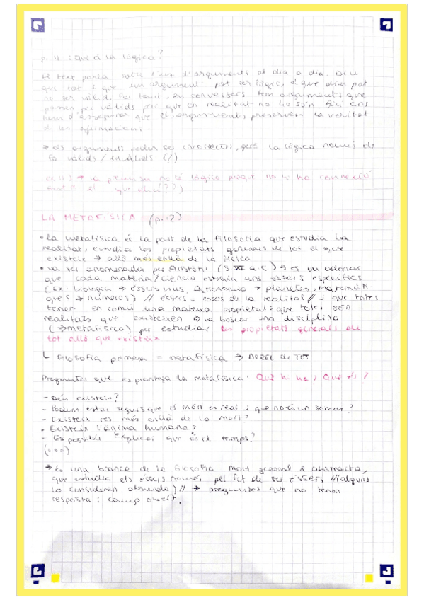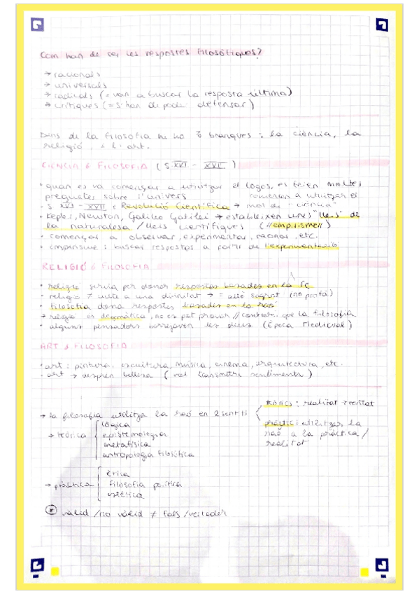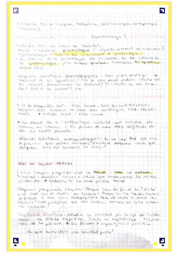 Filosofia 1r trimestre: apunts, pràctica d'extreure idees i correcció, i preguntes tipus examen corregides