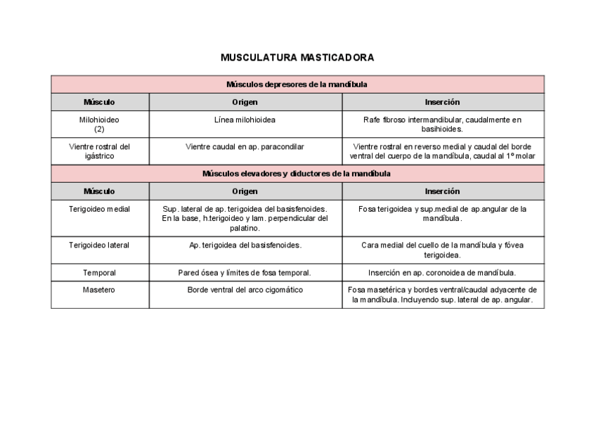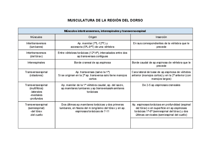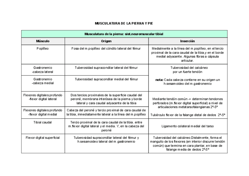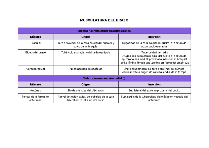 He publicado nuevos apuntes de 1º Anatomía Sistemática: TABLAS MUSCULATURA