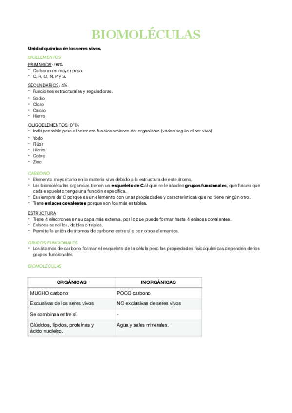 Todo sobre ellas + agua, sales, lípidos, proteínas, aminoácidos, enzimas, proteínas y ácido nucleico.