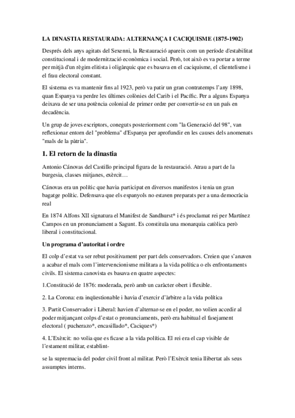 He publicado nuevos apuntes de Historia de España: Retorn-de-la-dinastia.docx