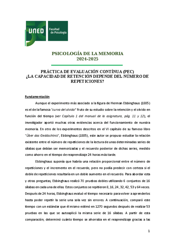 He publicado nuevos apuntes de 2º Psicología de la Memoria: Instrucciones - PEC